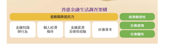 然而,此調查的研究結果預計於下半年第3、4季間正式發表。首先,著重於描繪出國人的金融風險抵抗力概況,並增加社會處境與社會屬性等背景條件,擴大了解的接觸點。第二,發掘普惠金融政策缺口,從貼近民眾生活的金融風險地圖,進一步成為主管機關的施政藍圖參考。第三,推動更有效的金融教育,促進我國的金融體系更具韌性,亦可供各界對於社會福利、照護等事業發展研究依據。