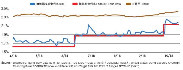 ●SOFR、LIBOR、Federal Funds Rate利率差異的變化。