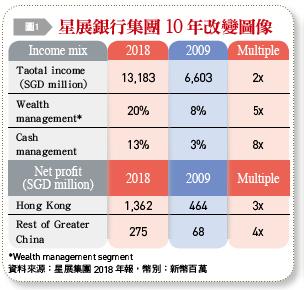 星展銀行集團在發展50年後的今天,成為亞洲最大的金融服務集團之一,業務主要分布在亞洲三個主軸市場,第一個是以新加坡為主軸的東南亞市場,包括越南、印尼;第二個是大中華市場,有中國、香港、台灣;第三個是以印度為主的南亞市場。