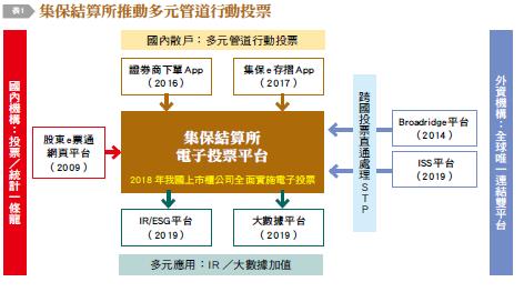 除了股票、票券外,集保之後也逐漸跨足基金、期貨,並建置股東會電子投票平台、基金公告申報交易平台,以及集保e存摺App、線上基金銷售平台(基富通)、跨境保管業務等服務,這些都是利用既有的大數據優勢,針對用戶的痛點推出新的資訊服務,每一項都跳脫了集保結算所的窠臼,也讓台灣成為其他國家集保爭相取經的對象。