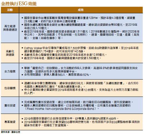 因為持續關注氣候變遷風險,國泰金在2018年訂定議合政策,希望藉由投資資金的影響力,與被投資的企業一同成長、改善ESG的績效,並將「氣候變遷」列為國泰的議合主軸之一,國泰金投資長程淑芬也在2018年11月受邀擔任亞洲投資人氣候變遷聯盟(AIGCC)主席,2019年國泰金與AIGCC、證交所共同舉辦第三屆氣候變遷論壇,積極對台灣企業倡議此議題,台灣市值前50大企業已有超過5成派人參加,成效卓著,國泰金期盼影響能持續擴大,讓台灣社會更美好、幸福。