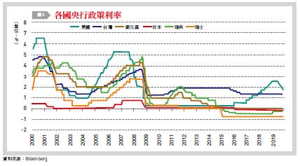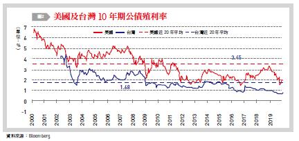 俗話說:「砍頭生意有人做,賠錢生意沒人做。」但奇怪的是,即使全球主要央行紛紛調降政策目標利率,公債殖利率也相應走低,日本、德國、瑞典及瑞士的10年期公債殖利率甚至落入負值〔圖1〕;美國及台灣雖然保持在正值,但過去20年的美國、台灣10年期公債殖利率平均為3.45%、1.68%,目前卻僅有1.92%、0.70%〔圖2〕,投資人卻仍趨之若鶩。這代表市場認為全球經濟前景充滿不確定性,遂寧願將資金置於相對安全的政府公債。