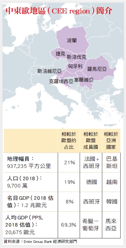 Fritz Mostböck分析,中東歐地區2018年的整體GDP年增率3至4%,呈現異常強健的態勢,推動力來自實質薪資的增加,以及外人直接投資,「如果你估測歐盟的西歐成員國GDP年增率平均1%,中東歐地區就會有2倍的2%」,中東歐地區前4大經濟體表現突出,整體名目GDP已超越西班牙,因外人投資需工孔急,當地失業率低,像捷克約3%,實際數據更低,中東歐儼然是歐盟成長的主要來源。