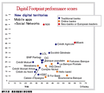 法國銀行分行網絡密度每10萬人口有56家分行,僅次於西班牙的62家,高於歐盟的45家,惟因工會力量及消費者仰賴分行服務,2010至2016年間分行數減少比僅7%,低於西班牙的33%,歐盟的20%,致其成本占收益比高達約75%。如何積極數位轉型降低經營成本,成為法國金融業最近幾年重要的戰略計劃,包含農業信貸銀行(Crédit Agricole)Strategic Ambition 2020及巴黎銀行(BNP Paribas)的2020 Transformation Plan。
