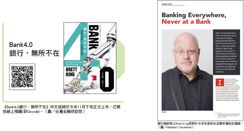 銀行創新教父Brett King在今年8月發表新作,並宣告Bank4.0時代的來臨,獨家取得新書授權的台灣金融研訓院將邀請大師於今年12月來台開講座,屆時歡迎大家踴躍參與,一睹大師風采。