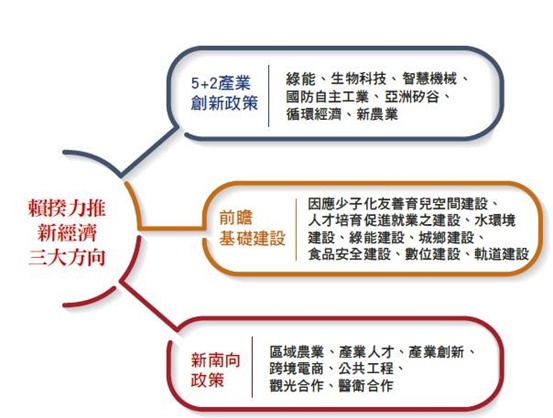 而產業投資的方向,賴清德也提到,為了加速台灣產業升級及經濟結構轉型,政府提出「5+2產業創新計劃」,目標5大產業為「智慧機械」、「亞洲‧矽谷」、「綠能科技」、「生醫產業」、「國防產業」,加上「新農業」及「循環經濟」,這幾個產業可作為驅動台灣下一世代產業成長的核心,也有機會為國內經濟成長注入新動能。