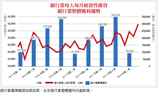 就以薪資來說,賴揆去年一上任,政府馬上為公務員加薪3%,希望民間企業能跟進。而根據人力銀行的調查,之後約有50%私人企業跟進加薪,加薪幅度為3.75%。每月經常性薪資低於3萬元以下的比例,從2011年的42.8%一路下滑,到2017年已降至34%。