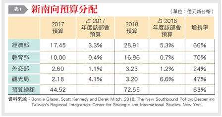 向的「以人為本」不是一個新的口號,而是具有真正的戰略新義。由於這次東亞與南亞地緣政治結構改變的最大原因來自中的對外擴張,而台灣又是中國必然加以封鎖的對象,因此台灣南向的生存空間不能只停留在傳統的主權國家或政府層次,而必須向下扎根到社會認同,通過經濟、文化、教育、科技等各方面的交往,讓其它國家與台灣社會與台灣人民存在真實的連結關係,從而產生實質風險連帶的共同體概念,也就是學界所謂的「平行外交(Para-Diplomacy)」模式。這種特色真實地反映在政府的預算編列,其主要的工作重點是在經濟與教育。