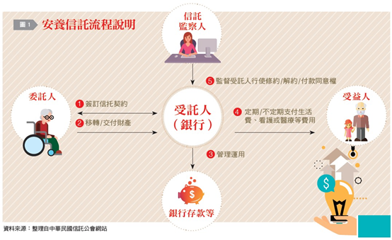 張齊家解釋,安養信託主要服務長輩未來可能發生失能、失智情況或身心障礙者,避免當事人無法或不方便管理財產而造成日後損失,提供完善的信託服務。以信託專戶確保專款專用,由銀行依約定支付受益人的生活、醫療、養護機構及看護費等,以確保財產安全。
