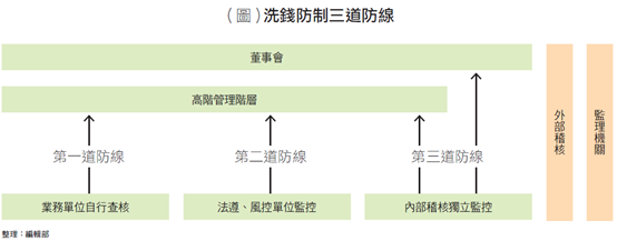 除了內部建立洗錢防制的制度規章之外,在第二個面向,他特別點出一個最常被金融業者忽視的環節,亦即重新檢視其內控及內部稽核制度是否有漏掉「洗錢防制」目的。他深入說明,國內每家上市公司都有制訂一套完整的內部管理控制及稽核制度,但由於這些制度早年在洗錢防制意識尚未抬頭的時代訂定,不見得符合當下美國銀行法遵、洗錢防制及制裁遵循等最新規定,因此這些內控稽核制度有全面檢視的必要性。