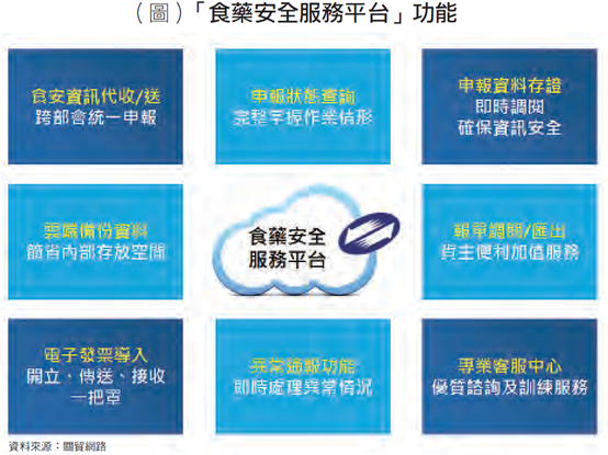 衛生福利部食品藥物管理署從2013年起陸續建置「食品藥物業者登錄平台」、「食品追溯追蹤管理資訊系統」,供業者進行基本資料登錄及每月申報產品流向資訊,為了協助並提供優質服務讓食品業者順利完成登錄及申報作業,資訊服務廠商「關貿網路股份有限公司」(以下簡稱關貿網路)建置了「食藥安全服務平台」,讓食品業者能快速上手完成政府的申報作業。