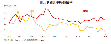 對照之下,在1970年代,我國公共投資占名目GDP的比率為12.8%,對經濟成長貢獻率達26%。但到2011∼2013年時,公共投資所占GDP比率僅剩4.4%,這樣的水準對照國際已屬偏低,再加上投資效率不彰的情況下,致使民眾逐步無感於政府的施政努力與決心。雖是如此,但台灣仍有極大的機會乘勢再起。尤其是因為近年經濟成長放緩而造成的超額儲蓄,以及目前基金操作報酬偏低的各種中長期資金,若得妥善運用,或能為當前的基礎建設發展突破瓶頸(詳見圖2)。