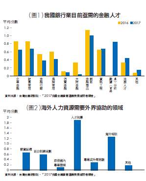 除了上述幾類亟需之金融人才外,在金融科技(FinTech)重要性提升的趨勢下,預期數據(資料庫)分析及資訊工程人才仍將是金融業未來持續存在高度需求的2項人才類別。另外,在其他方面,也有受訪機構提出需要金融犯罪防制人才及海外業務人才,而這2項人才也是本國銀行業隨著海外業務的逐步拓展,在人才的需求上呈現另一種積極發展的態勢。