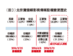 根據相關新聞消息整理,目前《大鬧天竺》的投資方中,有光線傳媒與王寶強的北京寶億嶸影視傳媒有限公司,該公司成立於2010年,股東為馬蓉和任曉妍(王寶強現任經紀人),馬蓉出資人民幣1,500萬元,任曉妍出資500萬元。2016年3月25日,該公司曾發生過一次股權變更,在這次股權的變更中,原持有公司75%股份的馬蓉,在變更股權後比率為0,原本持股為0的王寶強則改持62%的股份,原本持股為0的王寶強前經紀人宋喆 (也是媒體所稱的婚姻第三者) 改為13%。而公司另外25%的股權持有人為任曉妍,在此次股權變動中未顯示股權比率有作更改(詳見圖3)。