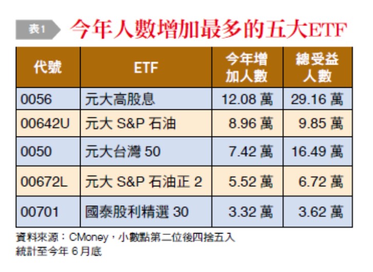 根據統計,國內持有股票型ETF的受益人數在今年上半年達到112萬人,不但比去年(2019)年底的80萬人增加了逾30萬人,還創下歷史新高紀錄。