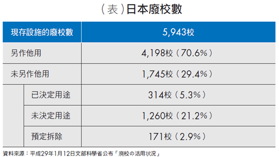 在這樣的時空背景下,不僅地方產業衰退,工作機會銳減,隨著勞動世代外移至鄰近大都市,都市化使地方就學孩童數量銳減,閒置或廢棄校舍也就逐年增加。