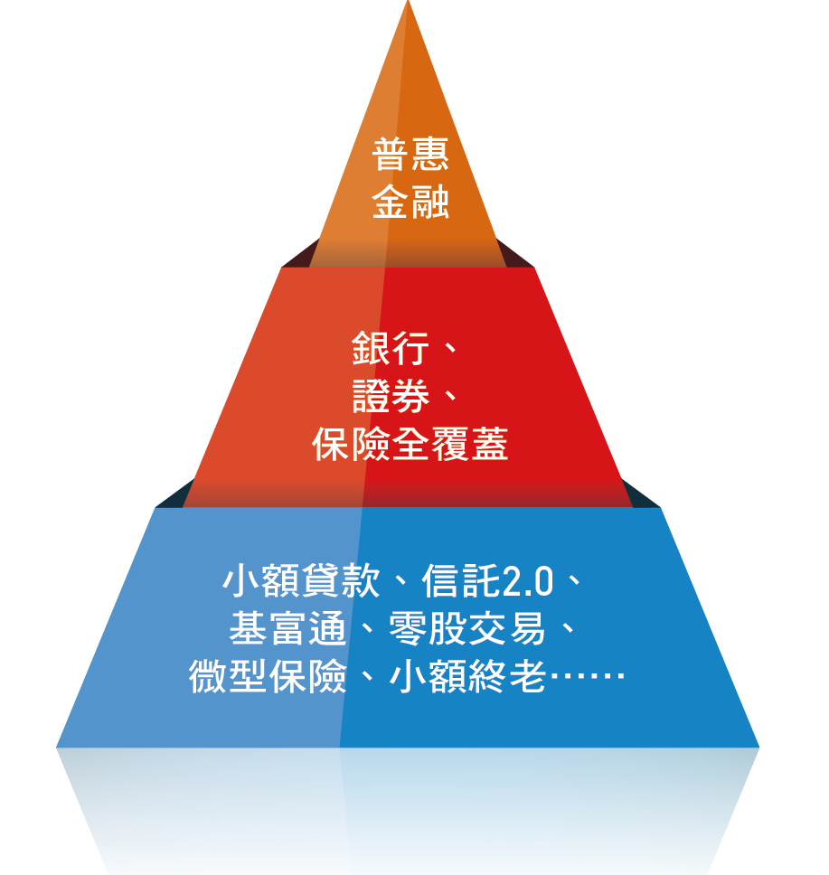 2.加強推動金融科技,創新金融服務模式,簡化金融服務流程,提升客戶服務體驗,讓不同地域、族群、年齡層且不分貧富,均能享受金融服務帶來的生活便利性。以金融總會依金管會指示設立的金融科技創新園區(FinTech Space)為例,正是協助金融業發展金融科技,培育新創與金融業合作,利用金融科技協助達成普惠金融目標的具體呈現。