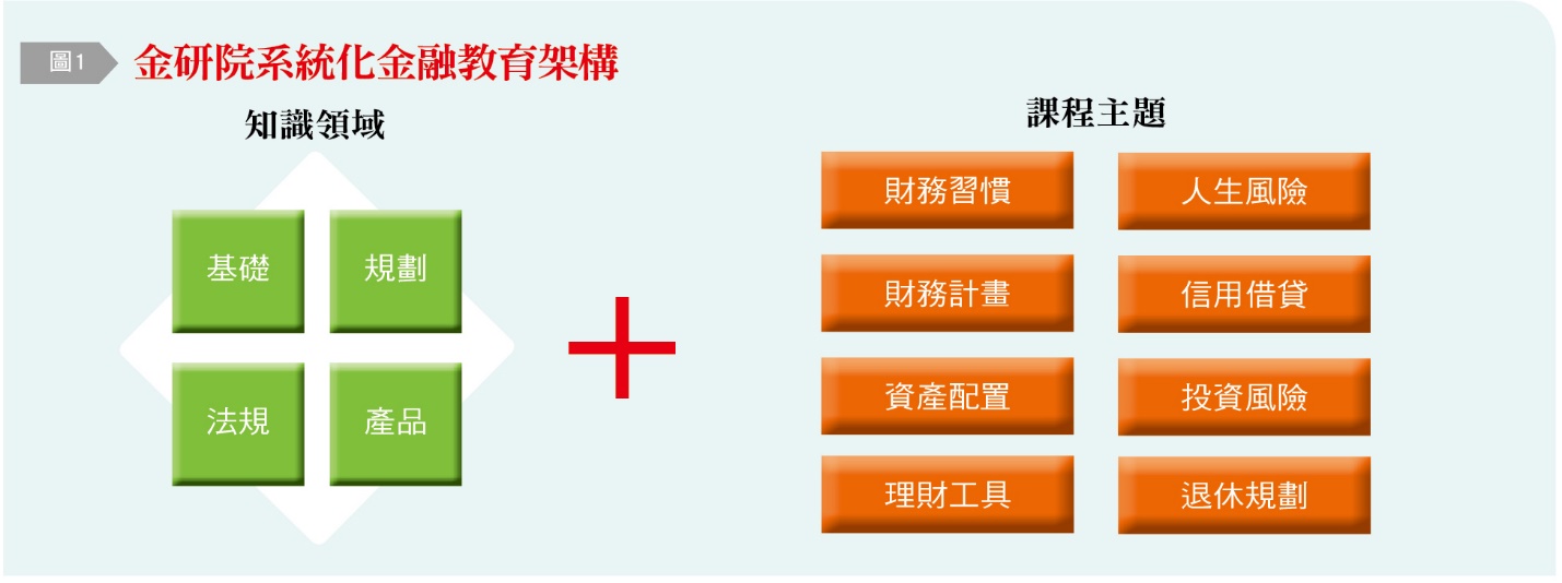 金研院多年來針對不同族群、地區提供金融知識學習管道,深刻了解民眾接受知識到落實行為間仍存在極大的落差。為能有效提升國人的金融素養,協助政府推動普惠金融政策,特別參考國際經驗,整合四大金融知識體系,並透過調研了解不同受眾的財務弱點,提出差異化的金融教育訓練方案,除了幫助民眾獲得自身所需的知識外,亦設計不同課程主題及財務規劃輔具,強化個人財務行為的鍛鍊。
