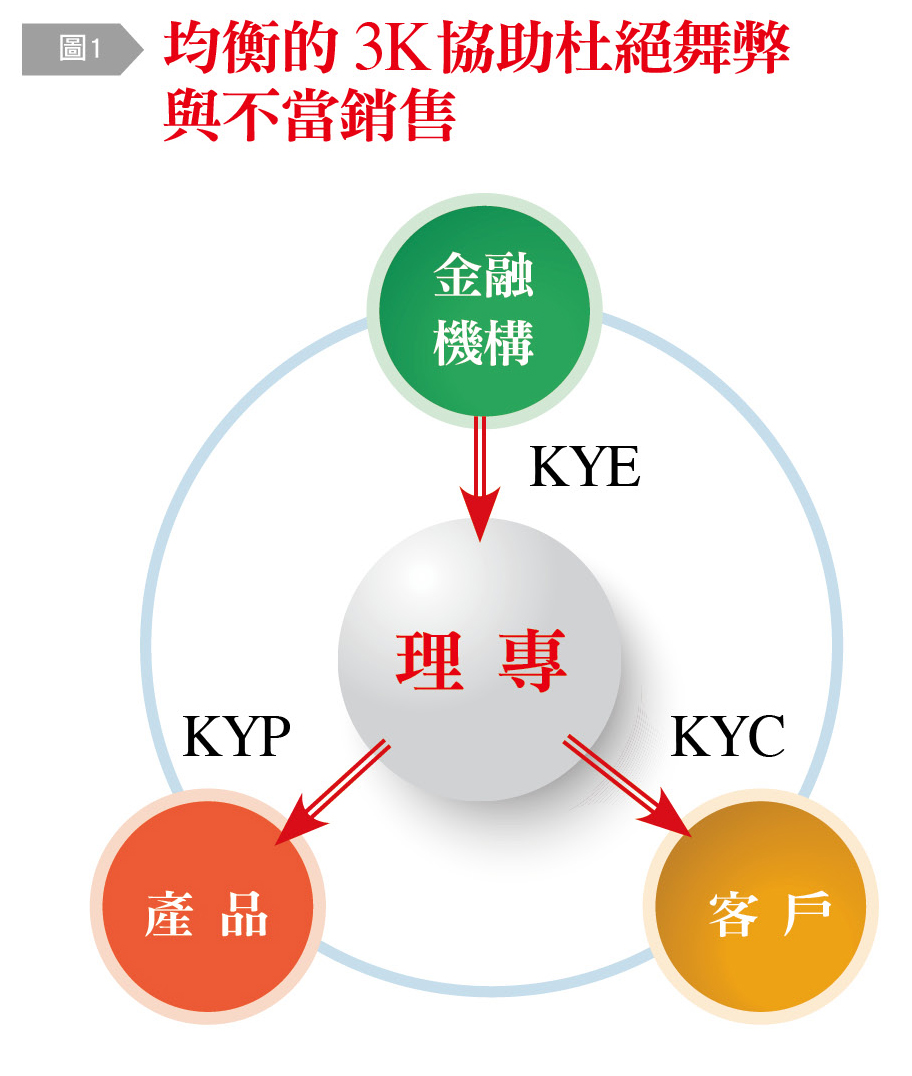 因此,銀行必須落實KYE(徹底了解行員),沒有KYE的制衡,光有強大的KYC(了解客戶)加上KYP(了解產品),未必是好事,反倒可能成為理專或行員違規的溫床。客戶也必須對自己負責,杜絕給予行員或理專犯案的機會,諸如自己謹慎保管存摺、印鑑或已簽章之空白交易單據,善用數位工具與生物辨識功能進行交易,更絕對不可將密碼交給第三人。
