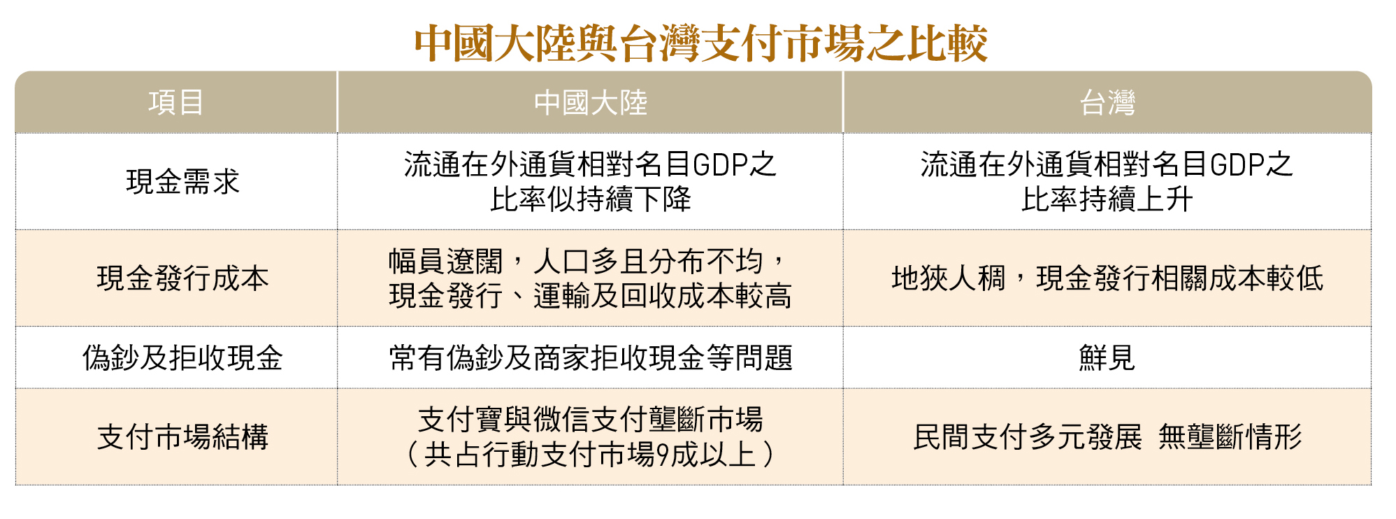 謝鳳瑛分析,目前主要國家央行,均正循序推進CBDC的研究與試驗,包含美國聯準會(Fed)、歐洲央行、挪威央行、瑞典央行、俄羅斯央行、日本央行、南韓央行及台灣央行都在研究中,中國大陸人行則試點中。中國大陸想推數位人民幣,主要是解決境內支付市場問題;而多數主要國家與台灣則無類似中國大陸支付市場的問題。