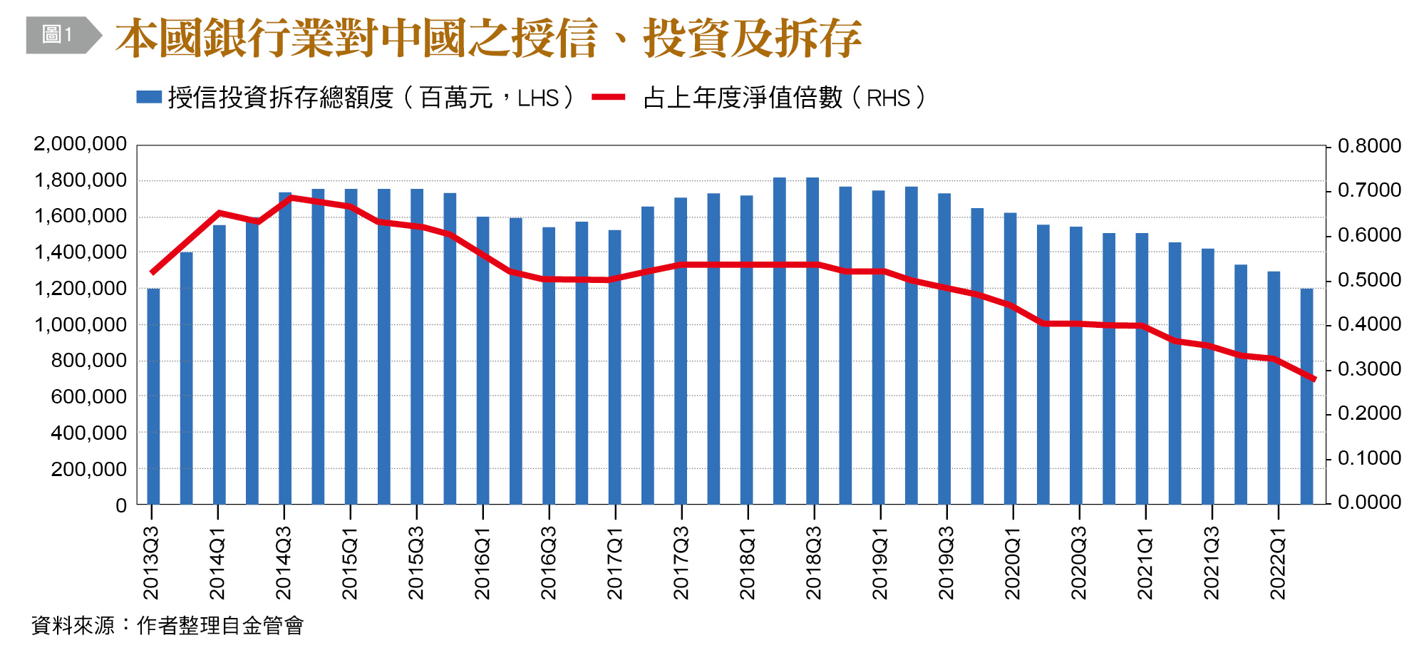 展望未來,中國面臨的變數和風險將更為複雜,國進民退跡象也更加明顯。台灣銀行業近幾年因中國經營環境日益惡化、成本逐漸提高、美中衝突升溫、疫情反覆下的清零政策方向影響生產與物流,以及全球供應鏈重組等因素影響,加上曾經歷的授信倒帳與人民幣匯損等風險因素,本已提高對當地的風險意識,對當地企業的授信與投資減少態勢已經確立,尤其多數銀行對於中國當地廠商的授信,多是抱持維持既有客戶,不再開發新客源的相對守勢,展現在數字上的就是曝險金額與占淨值比例的下降。當然,也有部分銀行業者仍看好中國龐大的經濟體量與後續的內需發展商機,決定繼續在中國投入資源。