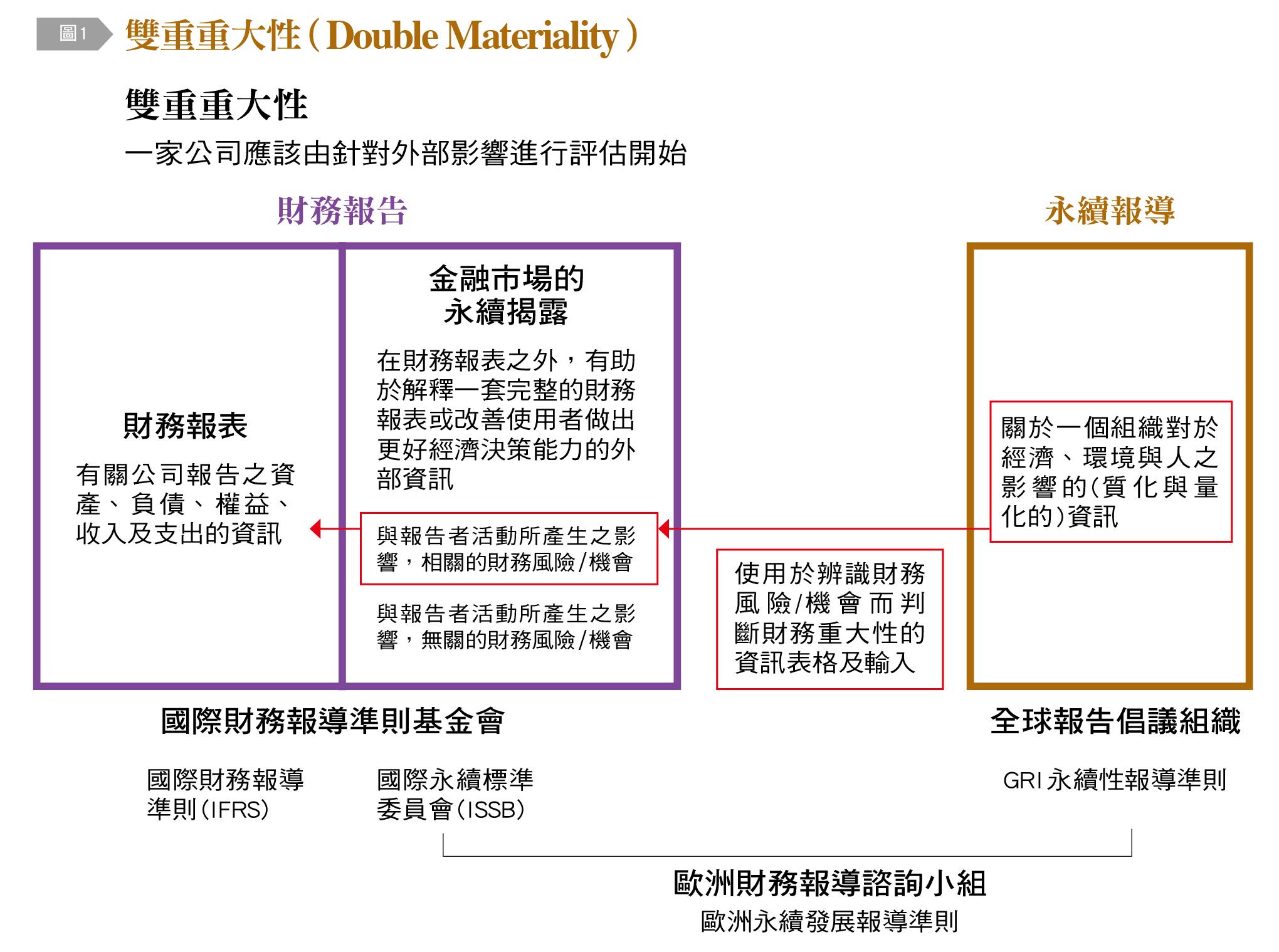 GRI大中華地區負責人Verna Lin表示,國際的永續報導準則與架構發展,主要是雙重重大性(Double Materiality)的整合,所謂的雙重重大性,是指「財務重大性」(Financial Materiality)與「衝擊重大性」(Impact Materiality)。
