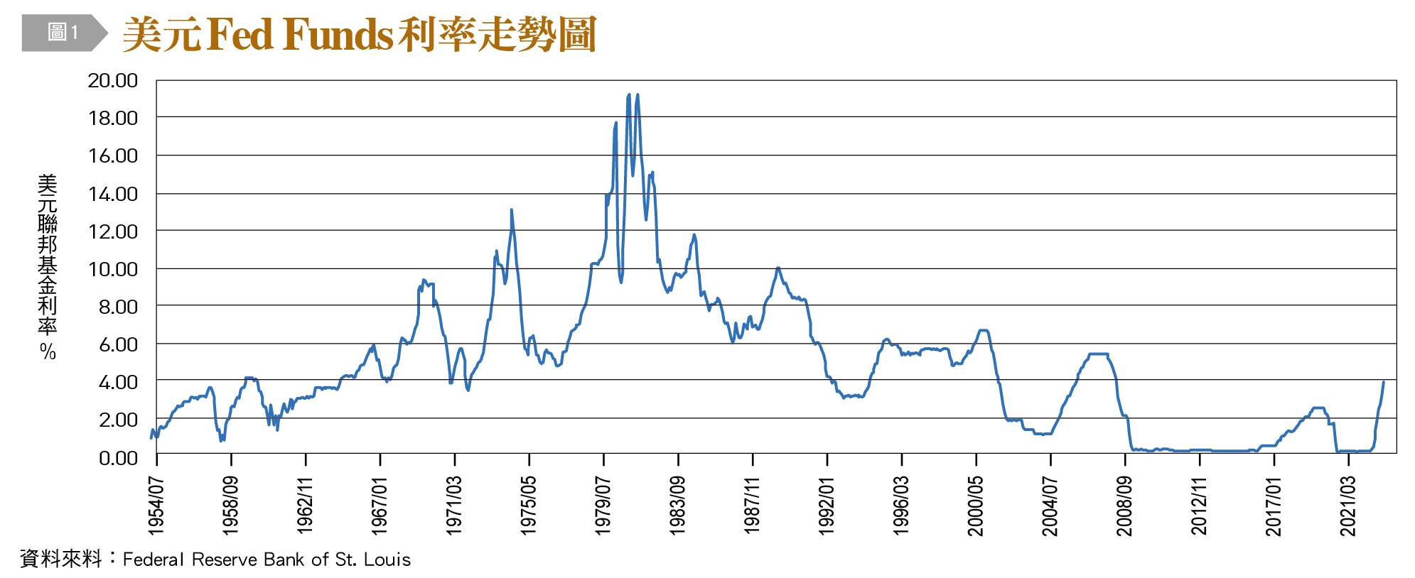 在過去一年,我們另外看到了民間企業的風險提升,如瑞士第二大銀行瑞士信貸因自身及客戶投資損失所引發的經營危機、黑石集團旗下REITs因面臨690億美元投資人贖回風波而需設下限制、世界第三大加密貨幣交易所FTX宣布倒閉的產業連鎖損失。即使各投資銀行在2023年展望皆預估通膨減緩,央行升息潮可能得以暫緩,卻也擔憂各國央行緊縮政策下可能帶來下一波市場動盪。當市場已經習慣近15年的美元零利率環境〔圖1〕,企業和投資者是否能夠挺過這次全球動盪的新賽局?或我們更需準備因應漫長又極端的國際金融環境?