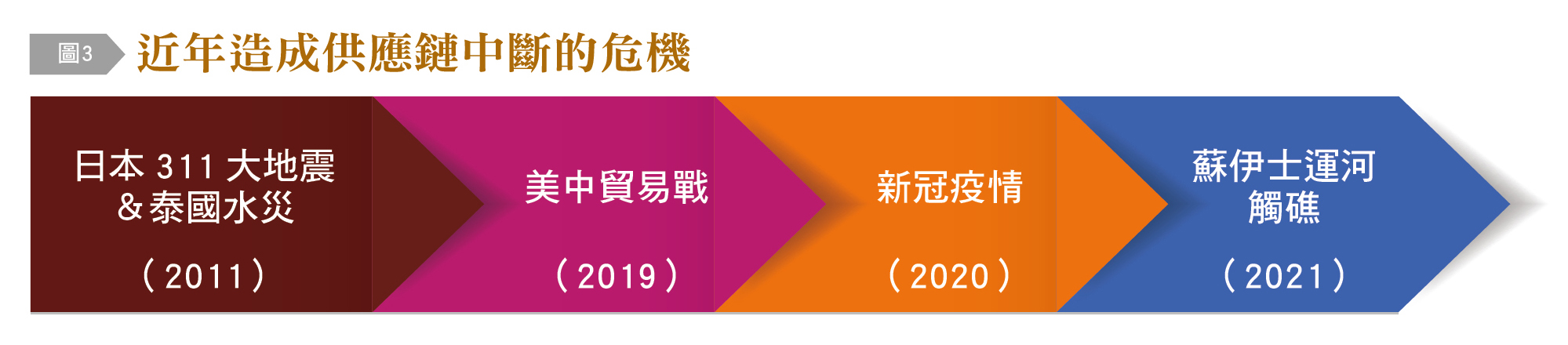 事實上,世人早已注意到供應鏈過於集中與單一所造成的風險。例如從2011年的日本大地震、泰國水災、美中貿易戰、新冠疫情,甚至貨輪在蘇伊士運河觸礁,都造成供應鏈中斷的危機。因此早在地緣政治衝突升高之前,業者就開始規劃供應鏈的多元化以增加韌性,只是美中衝突更加速供應鏈重組的步伐。歐盟央行總裁Christine Lagarde在一場演說中表示,「今日地緣政治緊張局勢,意味著全球經濟正在發生變化。價值體系的選擇,以及各種聯盟的組成,正在塑造全球新的經濟關係地圖。」雖然目前還無法確定這將如何發展,但我們已經可以看到全球貿易中出現了3個明顯的轉變。這些轉變包括:從依賴到多樣化的轉變、從效率到安全的轉變以及從全球化到區域化的轉變。