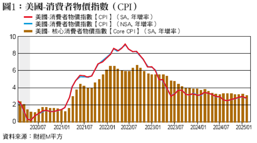 美國消費者物價指數年增率已經從2022年6月高峰的9.00%,到2024年9月降至2.43%,但在美國總統選舉底定之後,又逐步升高至2025年1月的3.00%,雖然2月略微下降,但令人不禁要問,在近期經濟狀況穩定的情況下,物價上升的壓力究竟從何而來?