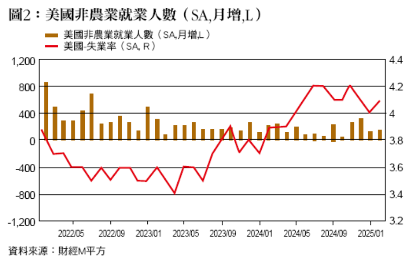 再從更廣泛的就業情況來看,相較於新冠疫情結束後非農新增就業的大幅增加,最近一年的新增就業已漸趨穩定,失業率雖維持在4.0%上下,但民眾對於未來裁員的擔憂卻上升,特別是政府周邊機構的約聘雇員,在馬斯克喊出將大幅縮減聯邦支出後,更是戰戰兢兢的過著每一天。