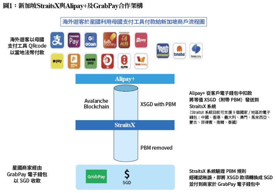 2024年StraitsX便利用PBM概念與Alipay+及GrabPay進行合作,以StraitsX所發行的穩定幣XSGD(與新幣1:1掛鉤)為橋梁,讓包括中國在內等9國遊客可直接使用母國支付工具於星國付款,交易過程中Alipay+將等值的XSGD,利用PBM作為附加交易條件(例如:遊客的母國法規),傳送到StraitsX系統,經檢覈程序確認無誤後,系統便將PBM移除,並將XSGD轉換為新元放入商戶在GrabPay的帳戶,整個交易流程僅需數秒鐘時間即可完成,而由於消費者和商戶均利用既有收付工具進行款項收付,跨境資金移轉流程不但更快,也更加便利。